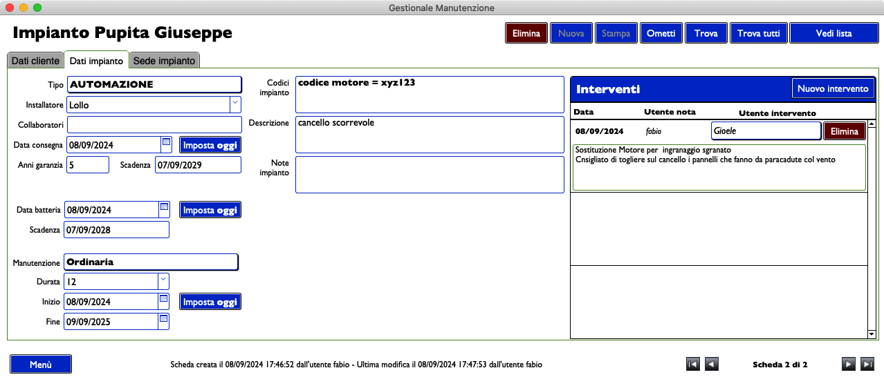 Gestionale manutenzione impianti