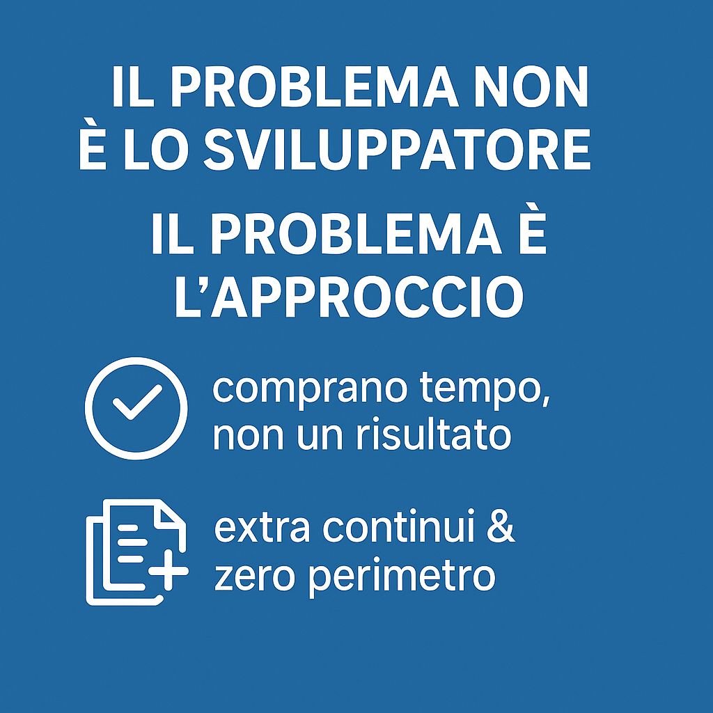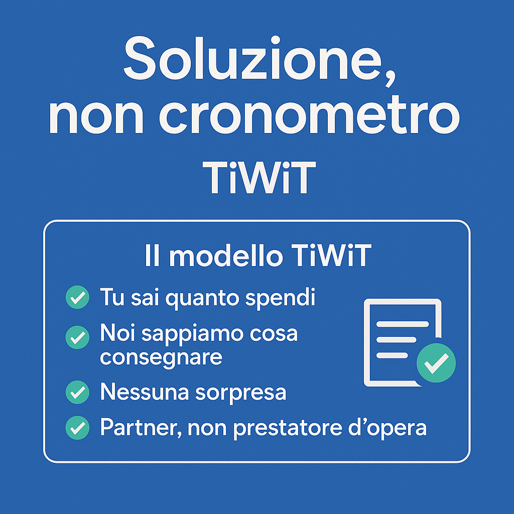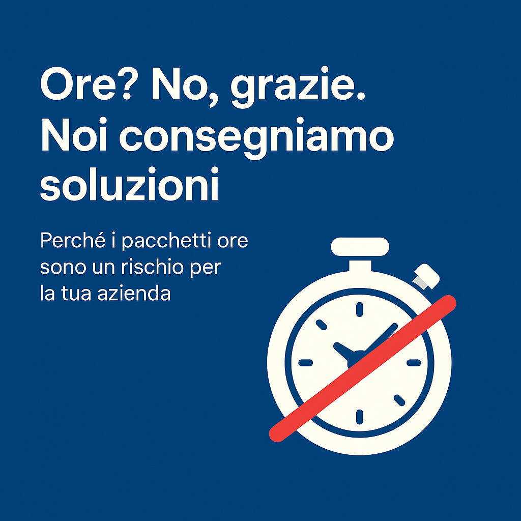 Nel 2025 il mercato è ancora pieno di chi ti fattura a ore come se il tempo fosse la merce. Noi no.